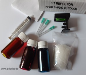 Kit Refill Reincarcare Si Desfundare Cartuse Hp302 F6u67ae Hp 302xl Color Okazii Ro